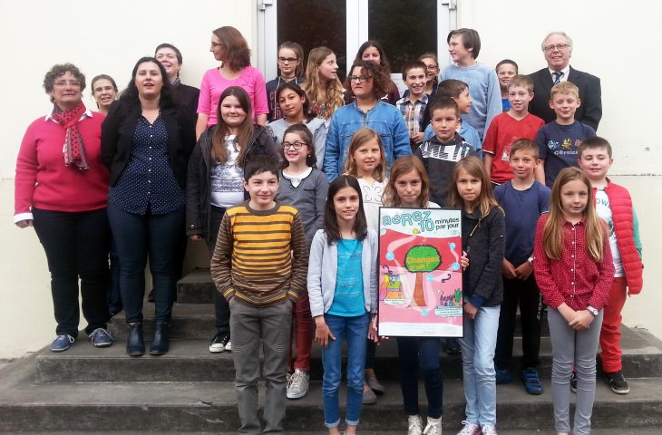 Les élèves de l'école des Millevignes posent avec l'affiche primée du concours Changez d'air