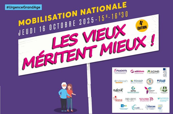 Avec cette campagne, le collectif appelle les citoyens, les familles, les aidants, les élus et les acteurs de la santé et du grand âge à se rassembler le 16 octobre prochain. En effet, la vieillesse ne doit pas être synonyme d’abandon. La dignité ne se négocie pas. C’est pourquoi le collectif invite chacun à interpeller les médias sur l’espace public ou sur les réseaux sociaux, à manifester, proposer des animations dans les établissements… L’objectif ? Montrer la capacité de mobilisation du secteur du grand âge et sensibiliser les citoyens et les décideurs politiques à la nécessité d’une loi ambitieuse et des moyens accrus pour soutenir nos aînés.