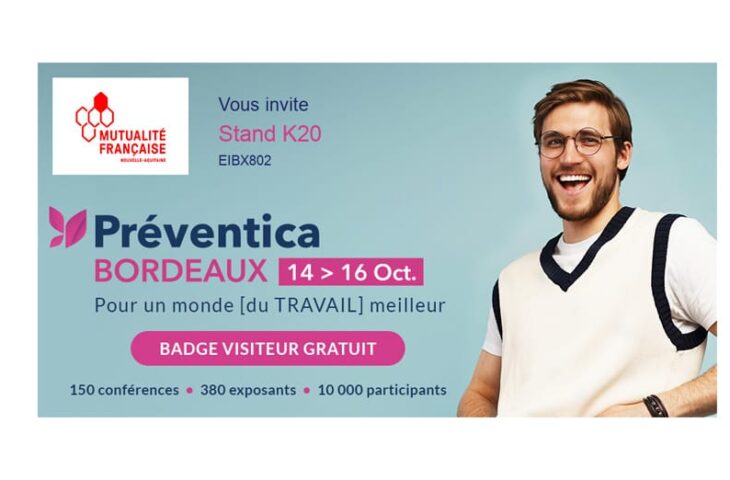Du 14 au 16 octobre 2025, la Mutualité Française Nouvelle-Aquitaine participe au salon Préventica Bordeaux.